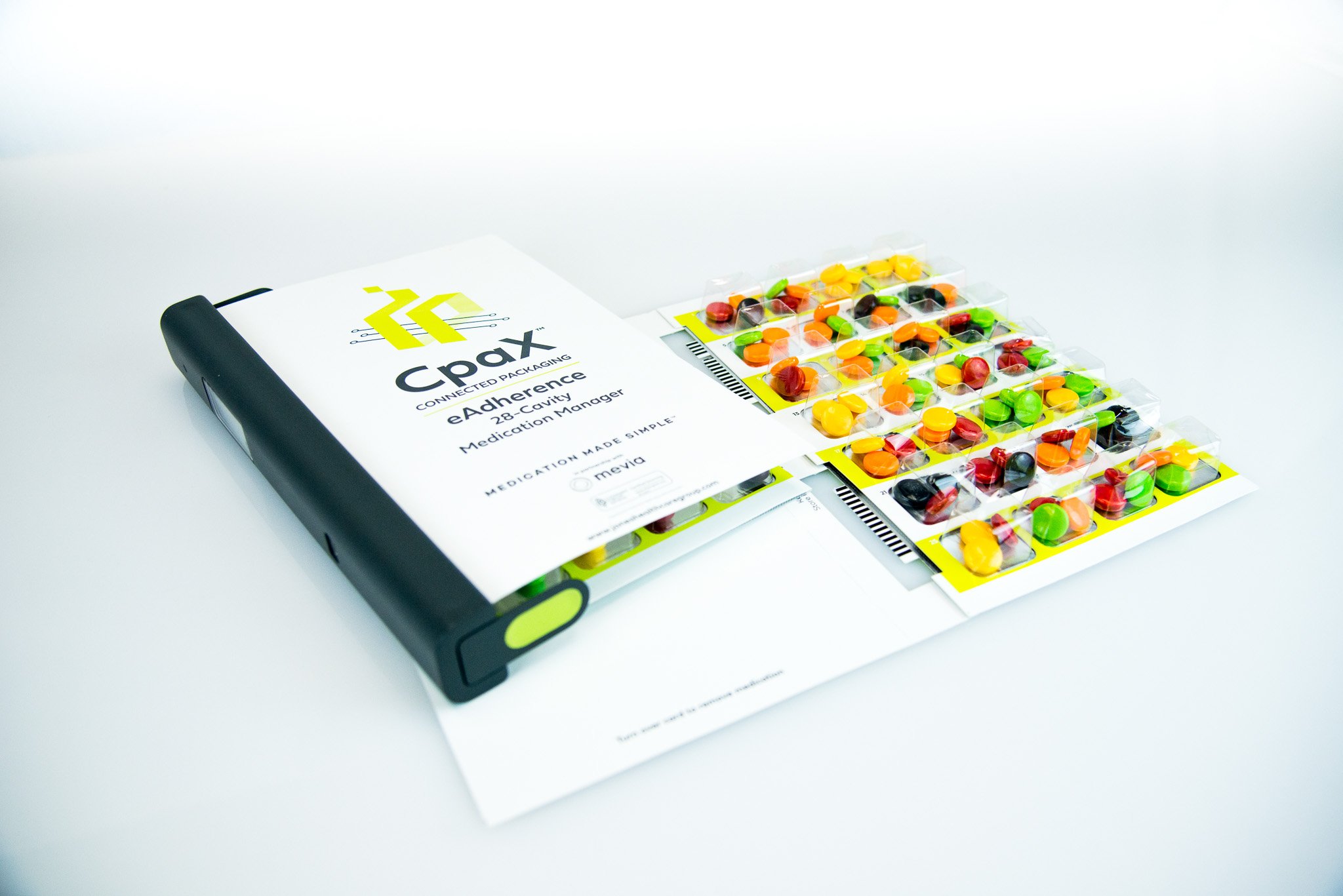 CpaX connected adherence packaging acts as a portal for health resources and supplies important reminders to take medication.